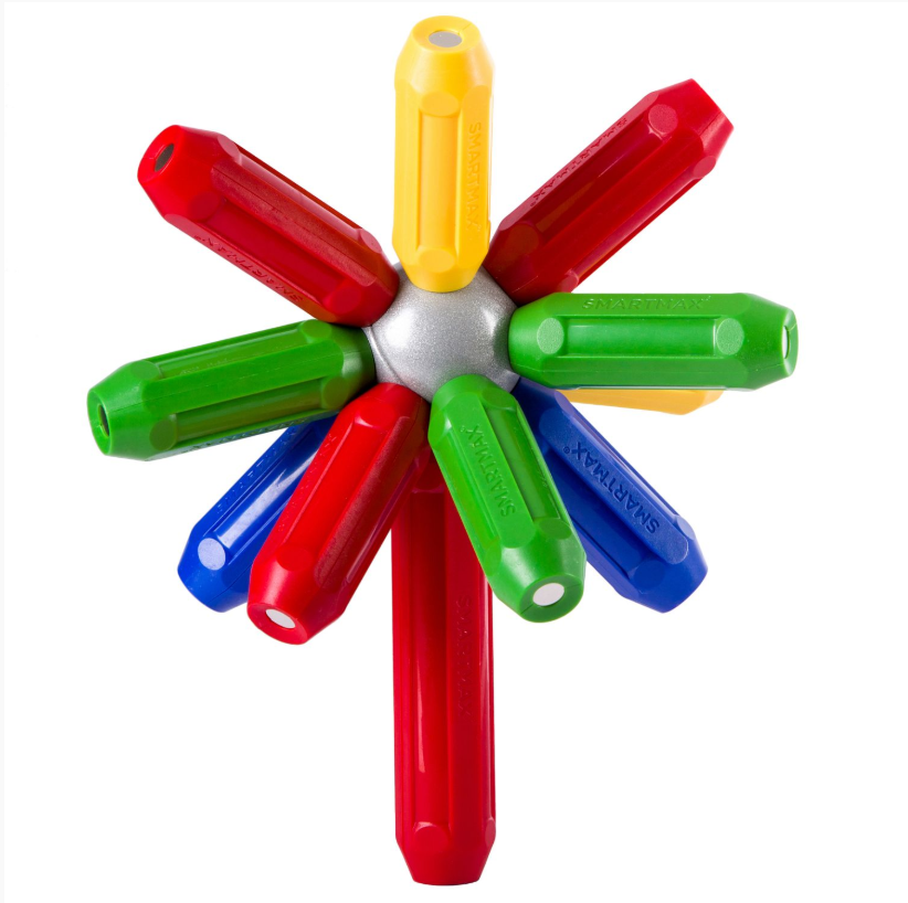 SMARTMAX растет вместе с вашим ребёнком Со сверхбольшими деталями набора SMARTMAX маленькие дети безопасным образом откроют для себя волшебство магнетизма. Подрастая, дети учатся строить более крупные и креативные конструкции. Все детали этого набора могут комбинироваться с деталями из других наборов SMARTMAX. Этот набор, содержащий короткие палочки, длинные палочки и металлические шары, является отличным стартовым набором.